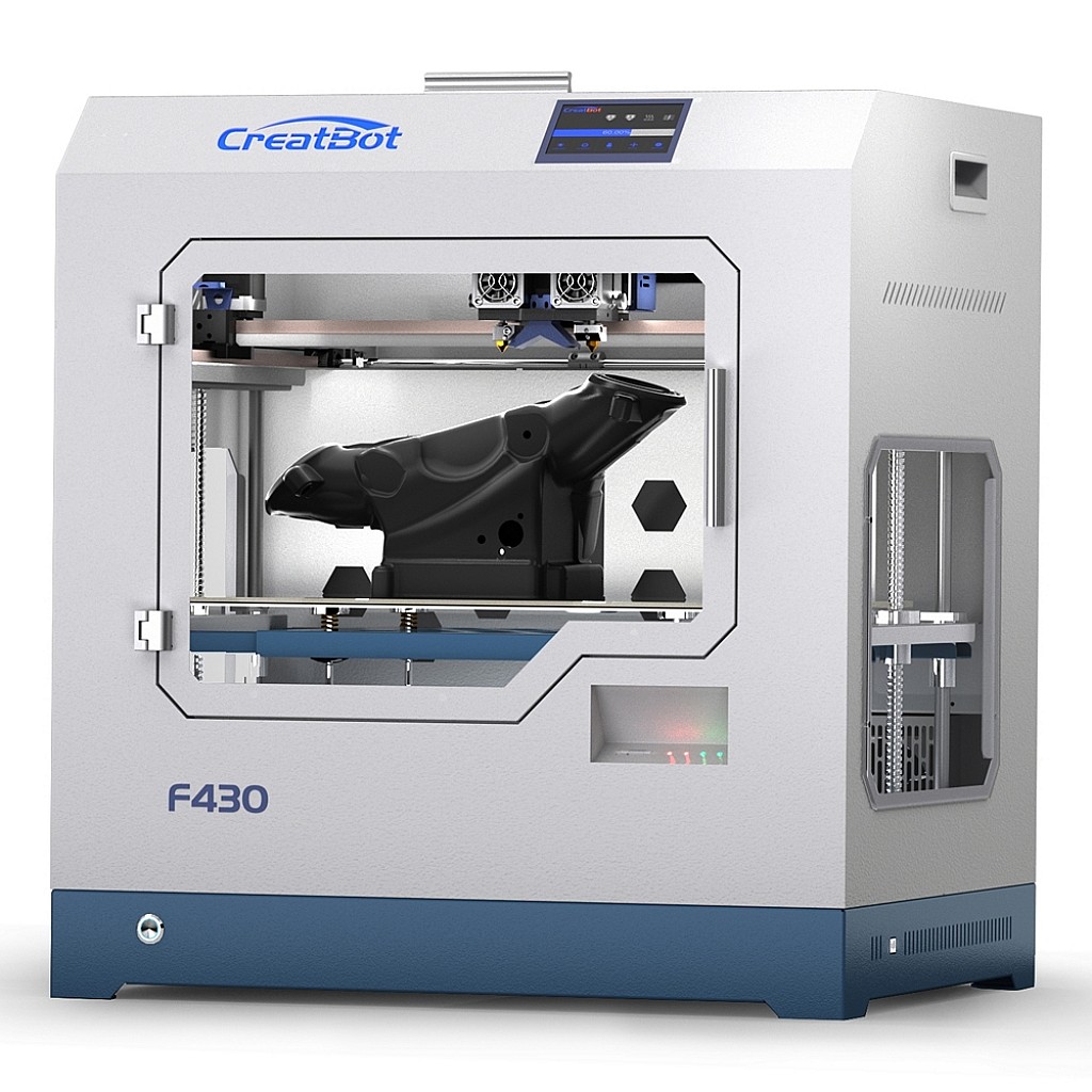 CreatBot F430 может быть расположен в офисе или даже дома, устройство интуитивно понятно в использовании и не принесет вреда для окружающей среды. При этом машина оборудована всем необходимым для печати инженерными термопластами.