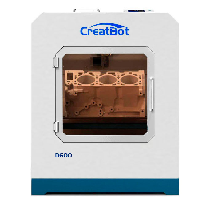 3D принтер Creatbot D600 оборудован двумя экструдерами. Один блок печати разогревается до 260°C и используется для печати пластиками PLA, ABS, ASA, PETG,TPU. Температура второй головки может достигать 420°C, что позволяет работать с инженерными полимерами — PC, PA, PA CF.